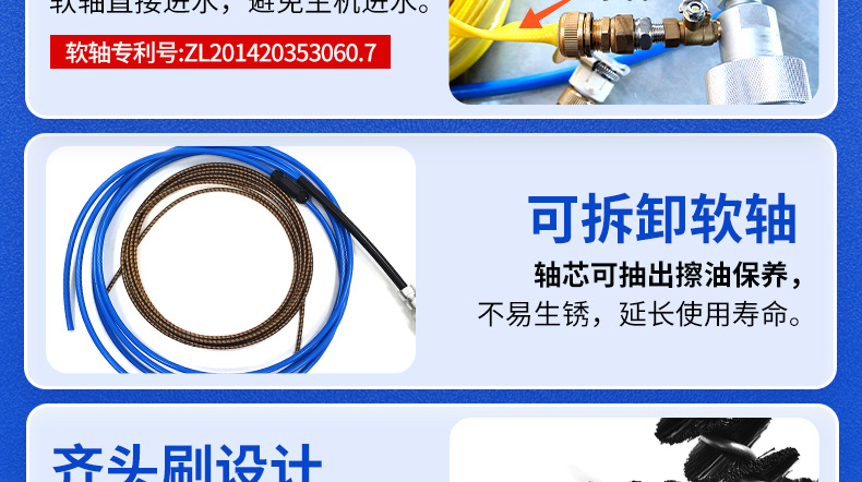 配置:主機,軟軸,快接水管,刷子,電源線,腳踏開關
