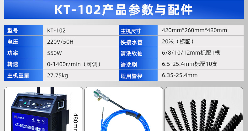 快通牌KT-102推車式冷凝器管道清洗機